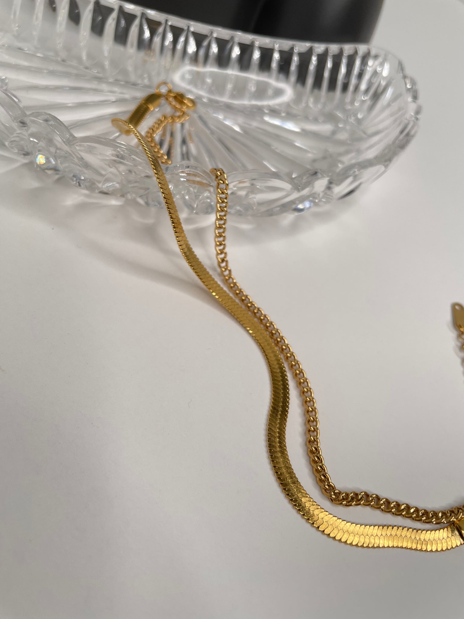 Camilla anklet is light weight and durable. Composed of two chains (herringbone and curb chain) giving a layered look. Two chains for the price of one! Wear this anklet alone or add another for a stacked look.